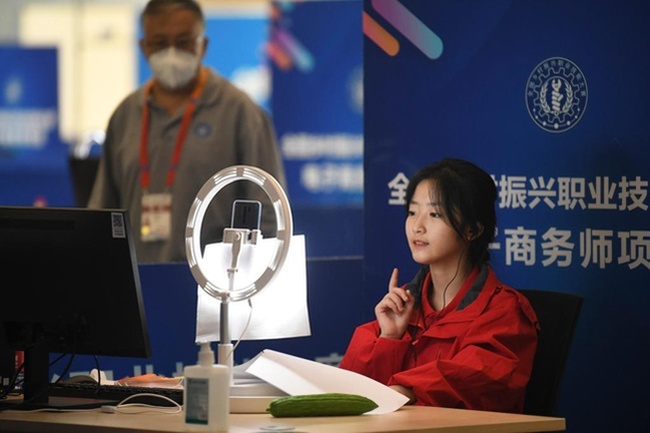 2021年9月26日,選手在烏魯木齊舉辦的全國鄉(xiāng)村振興職業(yè)技能大賽上比拼電子商務師項目。