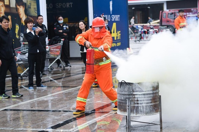 2021年11月2日,浙江省湖州市龍泉街道舉辦2021年度微型消防站技能比賽,工作人員正在比賽“接力滅火”。
