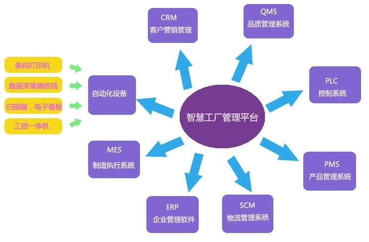 集合多種自動(dòng)化硬件設(shè)備、MES(生產(chǎn)執(zhí)行系統(tǒng))、ERP(生產(chǎn)管理系統(tǒng))、QMS(品質(zhì)管理系統(tǒng))、SCM(物流管理系統(tǒng))等眾多強(qiáng)大軟硬件集成的管理控制平臺(tái)。實(shí)現(xiàn)管理信息系統(tǒng)與現(xiàn)場設(shè)備的無縫對接,真正使生產(chǎn)設(shè)備自動(dòng)化。智慧工廠管理平臺(tái)集合“排產(chǎn)”與“生產(chǎn)調(diào)度”、在線質(zhì)量控制、車間物料規(guī)劃與控制、生產(chǎn)過程追溯、可視化過程監(jiān)控和生產(chǎn)狀態(tài)分析等功能于一身,通過實(shí)現(xiàn)高度的自動(dòng)化和信息化,打造智慧工廠,達(dá)到成本削減、生產(chǎn)效能提升和品質(zhì)保證的目的。