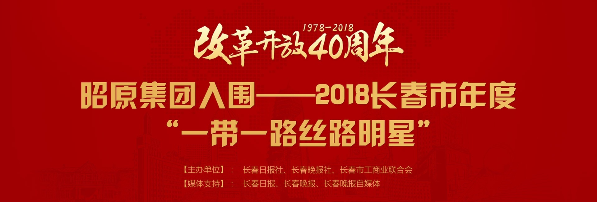 2018年是全面貫徹黨的十九大精神的開局之年,是改革開放40周年,是決勝高水平全面建成小康社會、實施“十三五”規(guī)劃承上啟下的關鍵一年。企業(yè)家是經(jīng)濟社會發(fā)展的主力軍,是推動改革發(fā)展最積極、最重要、最活躍的力量。為展示長春市企業(yè)家的風采和在我市經(jīng)濟社會發(fā)展中所取得的輝煌成就。長春日報社、長春晚報社、長春市工商業(yè)聯(lián)合會通過聯(lián)合開展“致敬改革開放四十周年”2018長春市年度“優(yōu)秀民營企業(yè)家、一帶一路絲路明星、杰出企業(yè)中介服務機構”大型宣傳展示活動,用榜樣的力量助推長春市經(jīng)濟建設,實現(xiàn)經(jīng)濟持續(xù)健康發(fā)展和社會和諧穩(wěn)定。